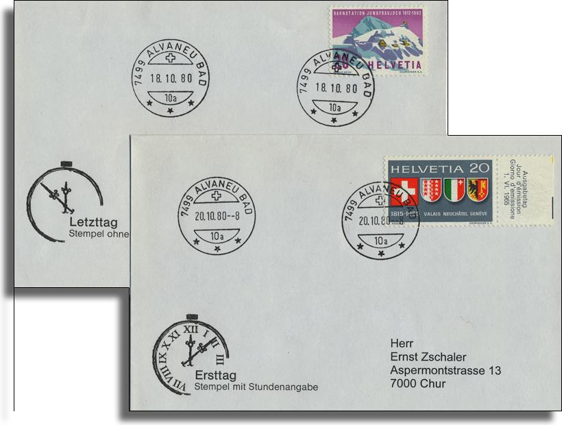 1977 und mindestens bis April 1878 war die Stempelfarbe blau.