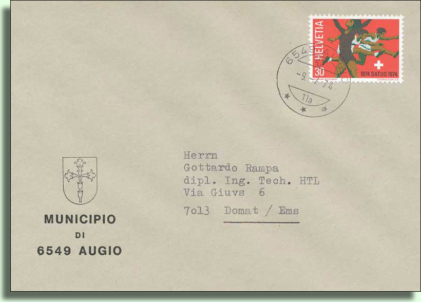 Augio war eine selbstständige politische Gemeinde. 1982 fusionierte Augio mit der ehemaligen Gemeinde Santa Domenica zur Gemeinde Rossa.