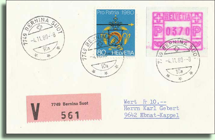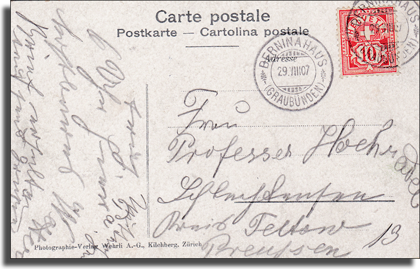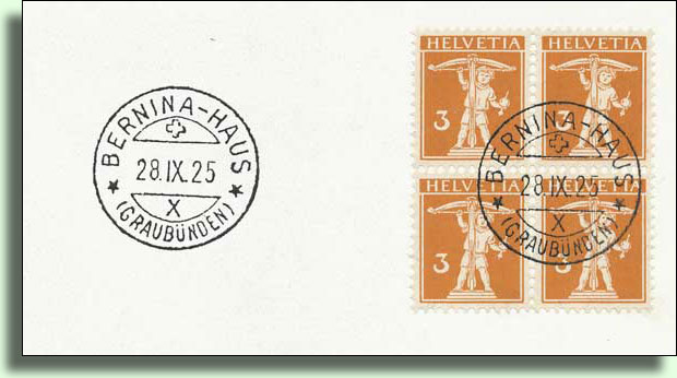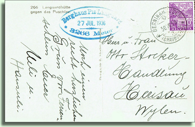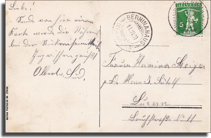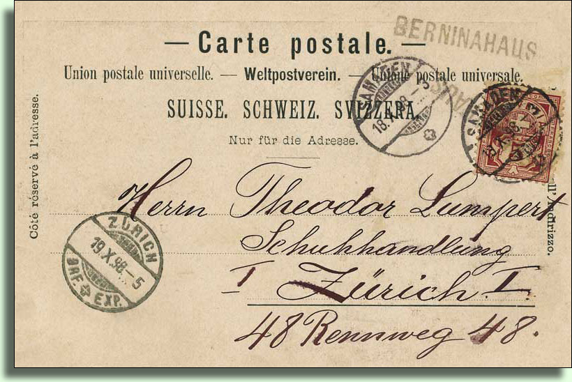 wie oben, mit Bahnpoststempel Samaden – Tirano