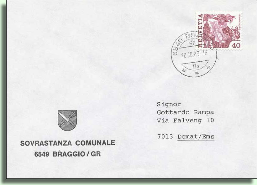 1850 hatte Braggio 123 Einwohner und 1872 erhielt es eine Postablage.