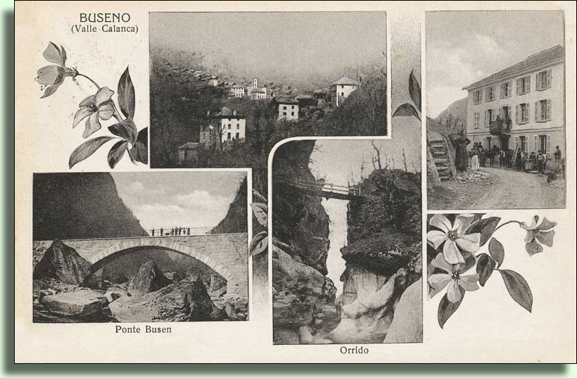 Buseno ist seit 1851 selbstständige Gemeinde, zuvor gehörte es zur Gemeinde Calanca. Früher fand eine starke Auswanderung von Glasern nach Frankreich und Harzern nach Österreich sowie Deutschland statt. Von 1935 bis 1943 hiess die Gemeinde Busen.