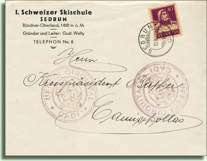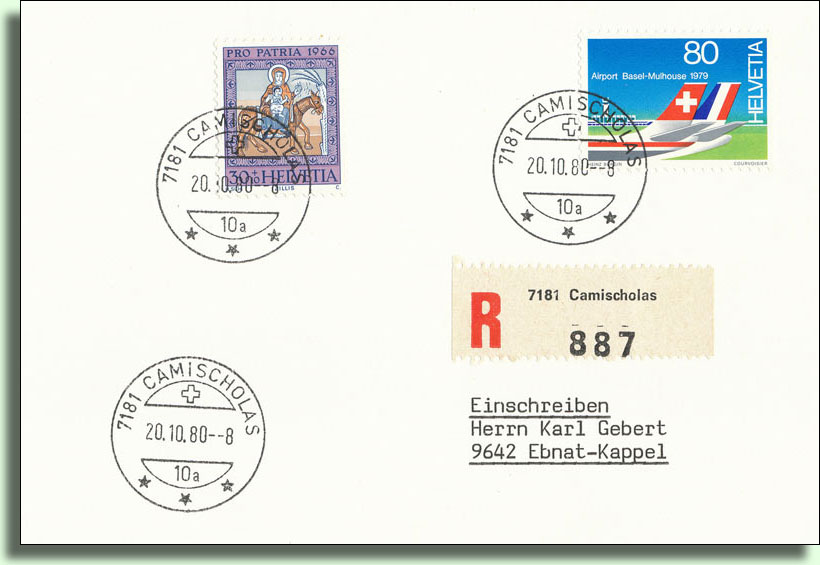 Rückseite mit Ankunftsstempel