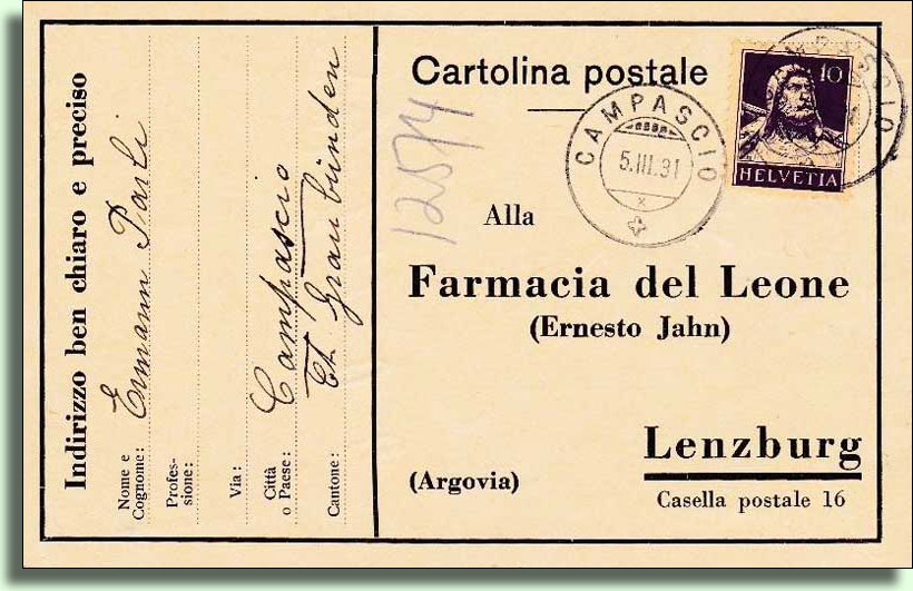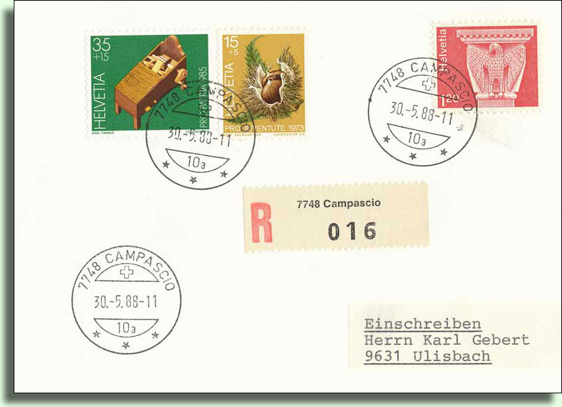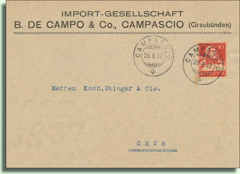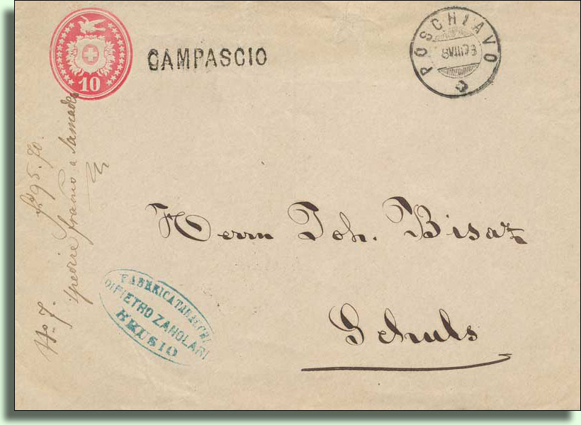 Campascio hatte 1855 174 Einwohner und erhielt am 28.05.1873 eine Postablage.