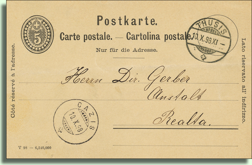Das linksrheinisch am Fusse des Heinzenberges gelegene Cazis, romanisch Cazas, war schon in vorgeschichtlicher Zeit bewohnt. Die ersten Siedler hatten sich den Petrushügel, norwestlich des Dorfes ausgesucht. Diese Ureinwohner, um 2000 v.Chr., am Ausgang der Jungsteinzeit, haben je zur Hälfte von der Jagd und von der Viehzucht gelebt. Die Entstehung der Schreibweisen: cacias(926), chazzes(940), cazias(1156), in loge de Caza(1257-1298), Katz(1400), chatz(1546), Caz(1386). Die älteste deutsche Form ist Katz. Der Name dürfte von dem vorlateinischen cattia-Schöpflöffel, hier geschützte Mulde, abstammen.