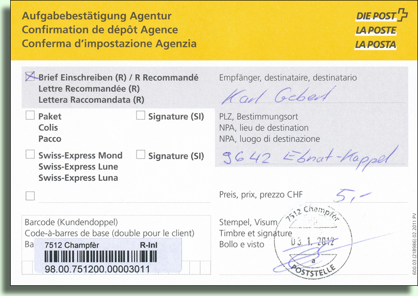 Postagentur Champfèr ab 16.10.2011: Via Gunels 7