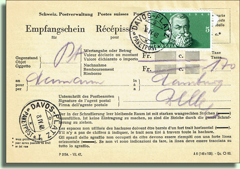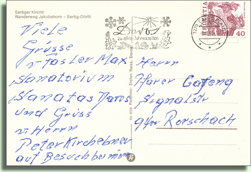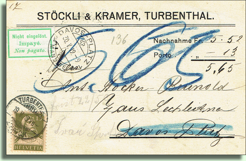 Diesmal war das Personal in Untervaz aufmerksam (Der Stempel ist auf der Rückseite.)