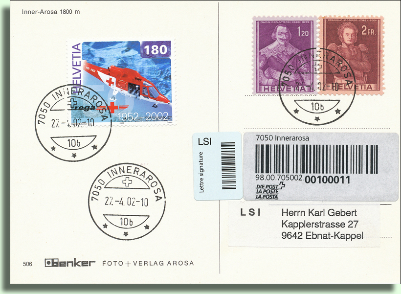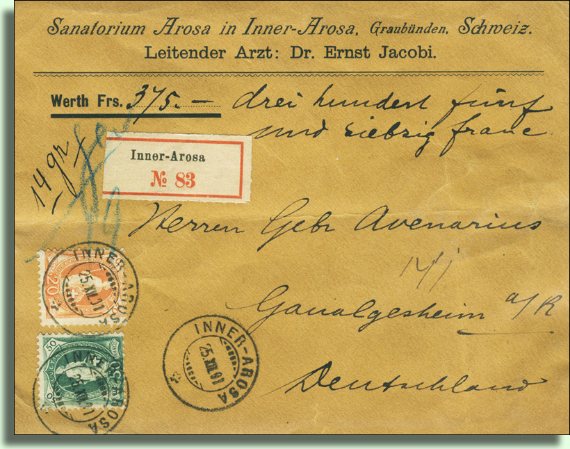 Die Pension Brunold (Haus Leinegga) beherbergt ab dem 01.09.1889 die Poststelle INNERAROSA und ab 1890 wird sie Endstation des Postkurses von Chur nach Arosa. Luzi Brunold wird Posthalter und das Postbüro ist im Erdgeschoss der Leinegga in einem getäfelten Zimmer eingerichtet.