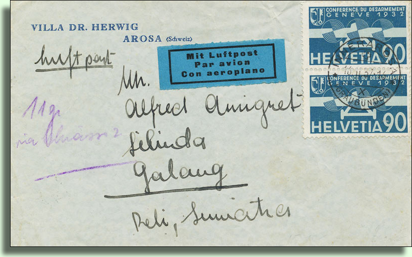 Brief nach Sumatra (Aufgabe: 16.02.1937, Ankunft: 01.03.1937)